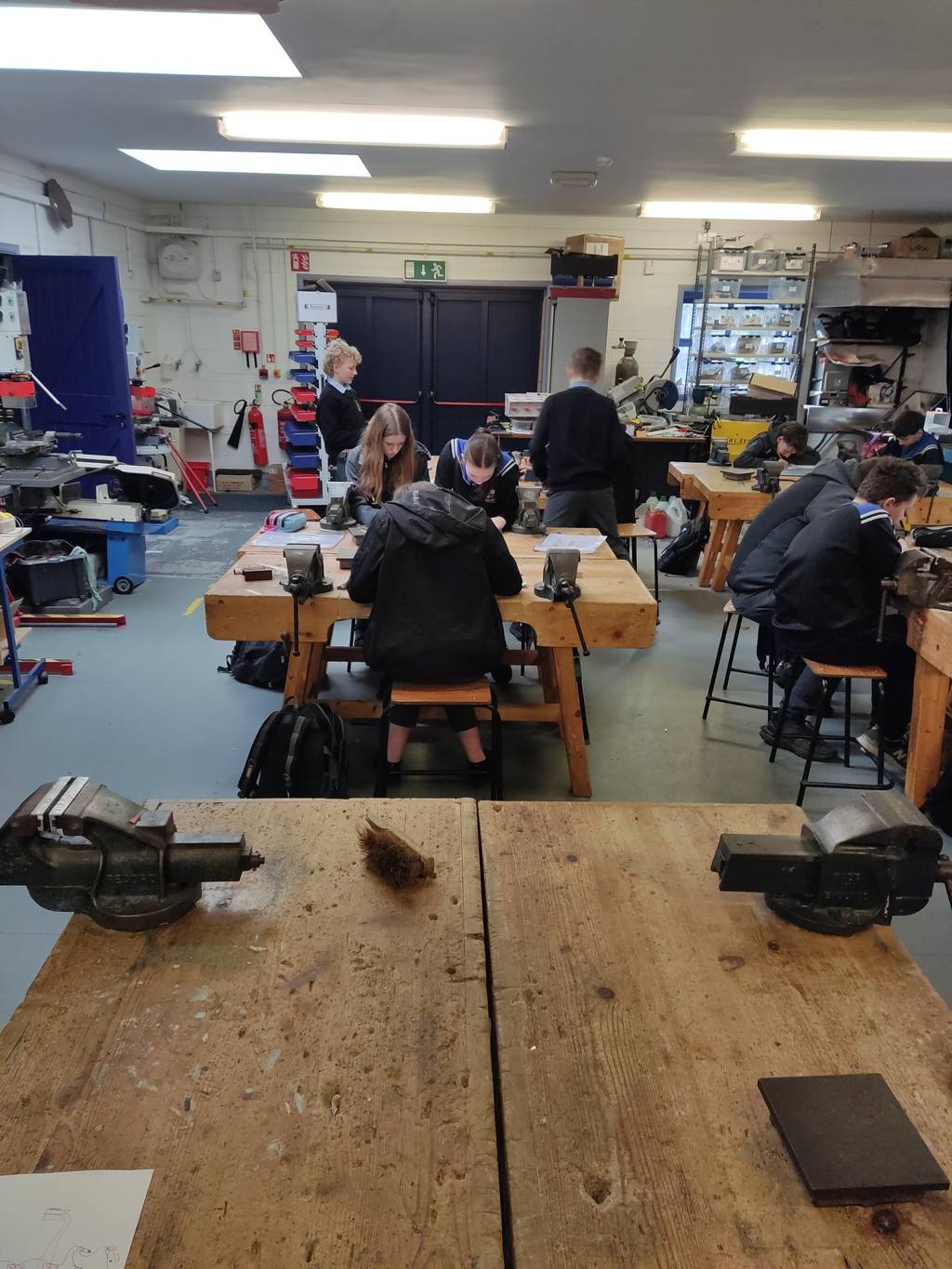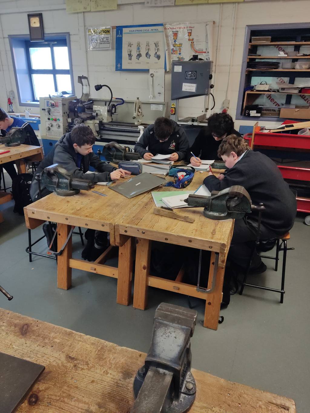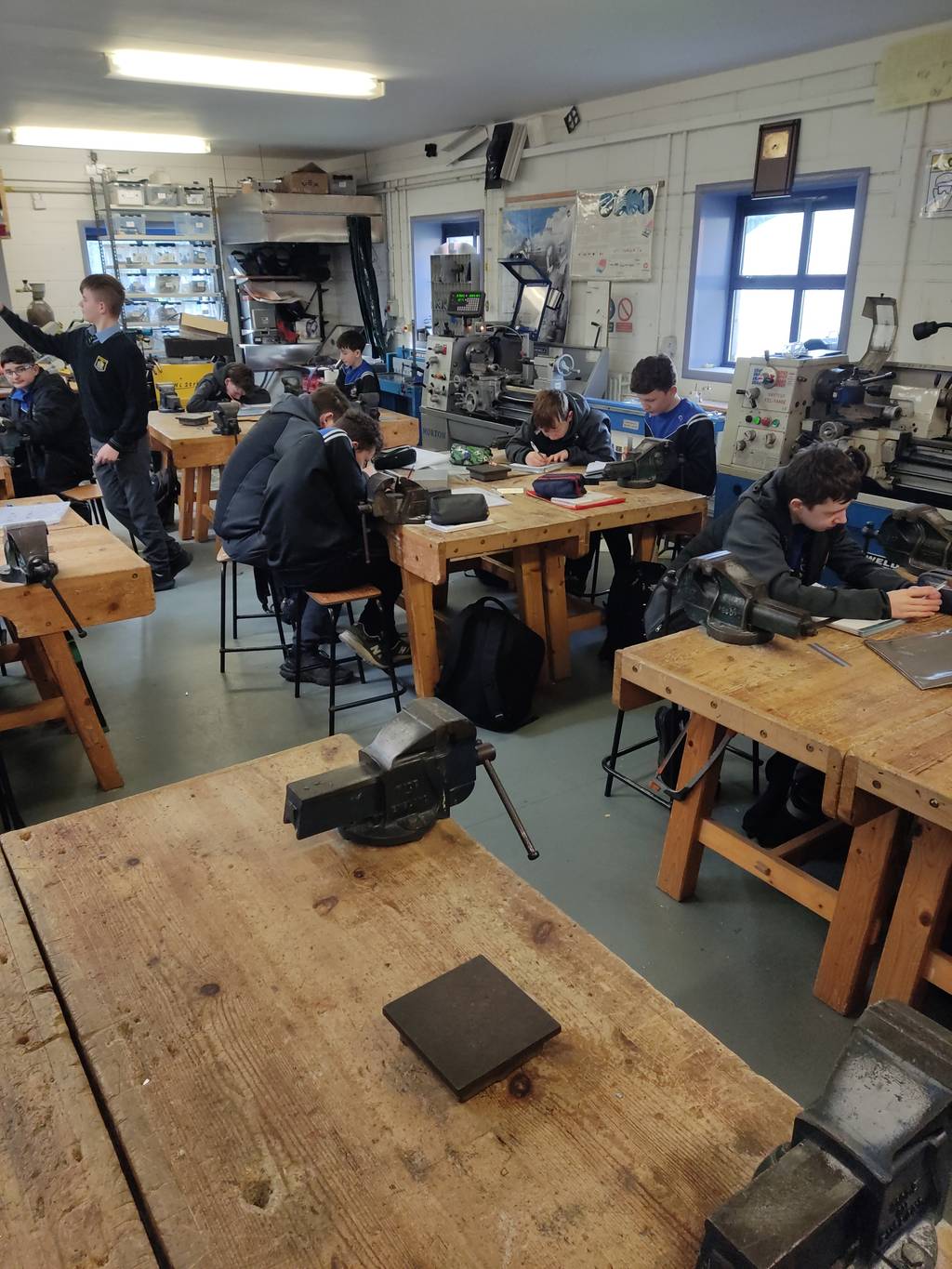 The 1st year engineering class are busy with their design and make of a skateboard keytag. The students have already made two prototypes of their design and are in the middle of creating their own working drawings. Looking forward to seeing the final products.
