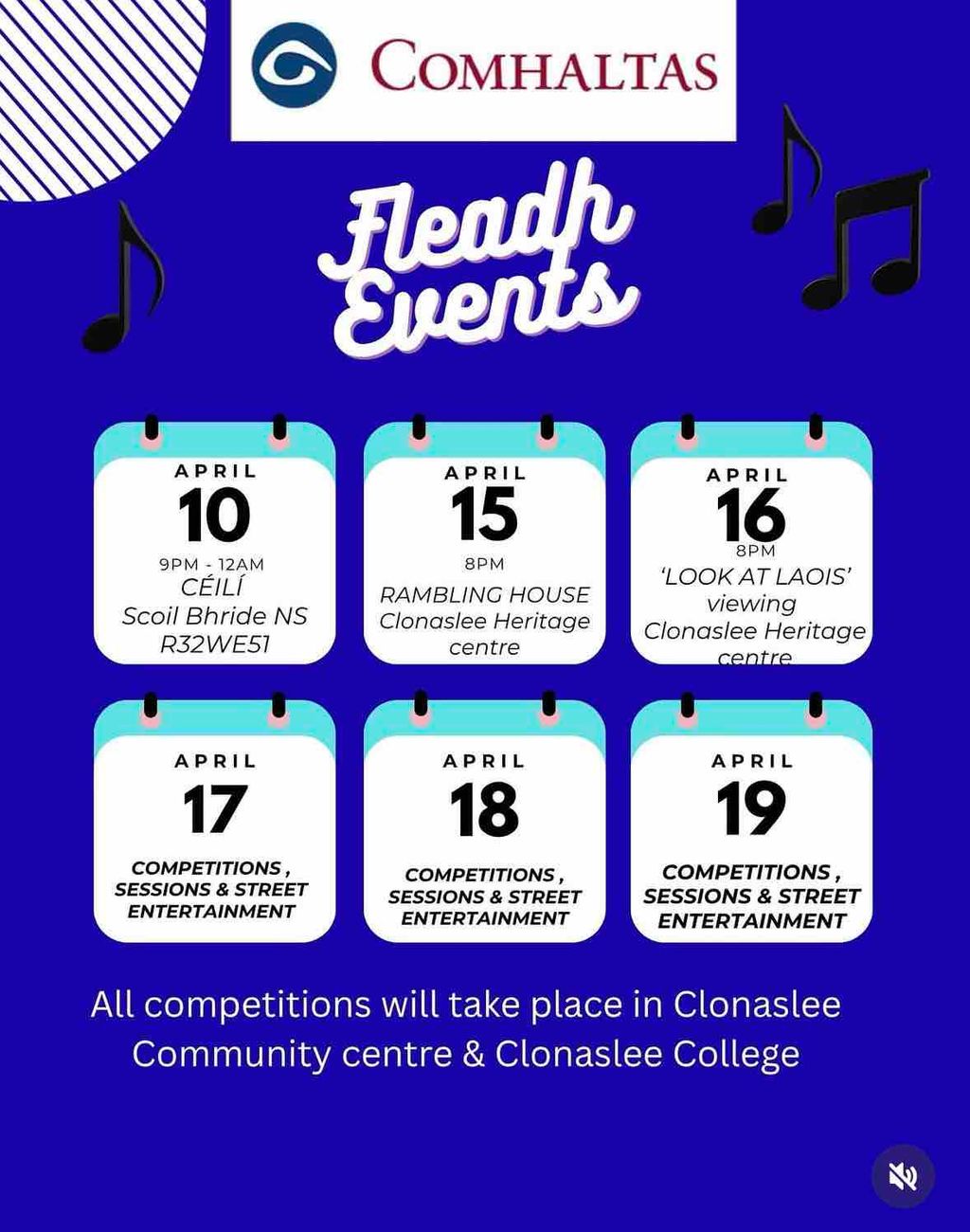 Clonaslee College would like to wish the very best of luck to all participants in the upcomin Fleadh Cheoil Laoise , proudly hosted by Clonaslee Comhaltas and Craobh Sean Ryan (Kilcavan) CCÉ.