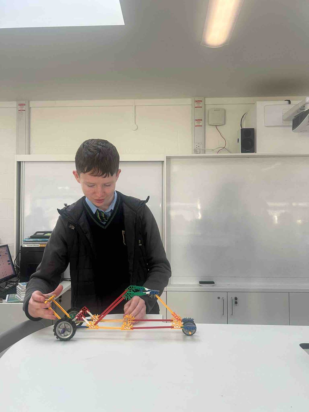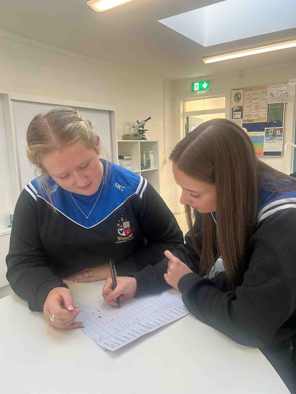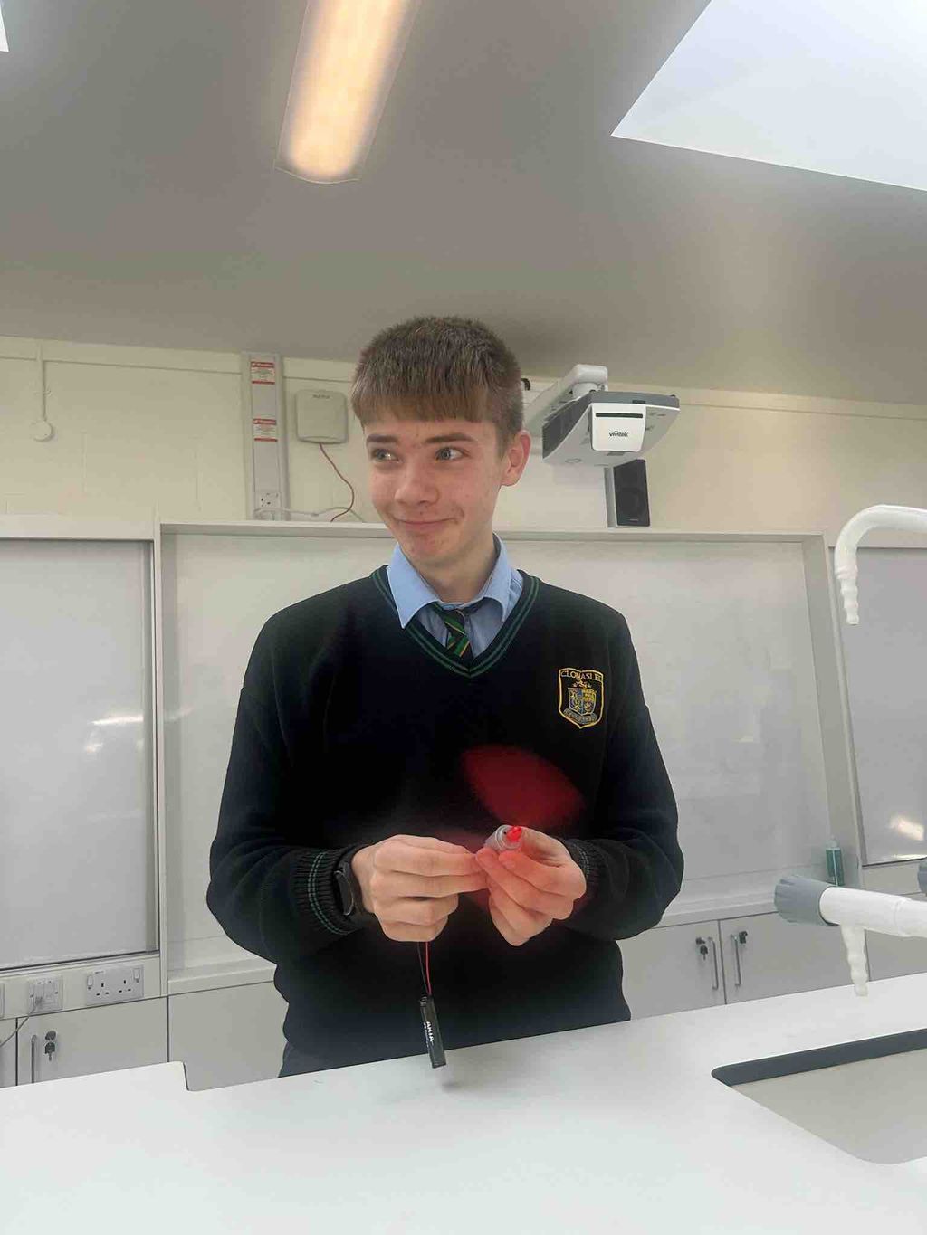 As part of Science Week, our Third Year students were challenged to design and build their own Energy Transfer Devices. TY students Mary Kate and Cadhla took their judging roles very seriously, testing each invention carefully.