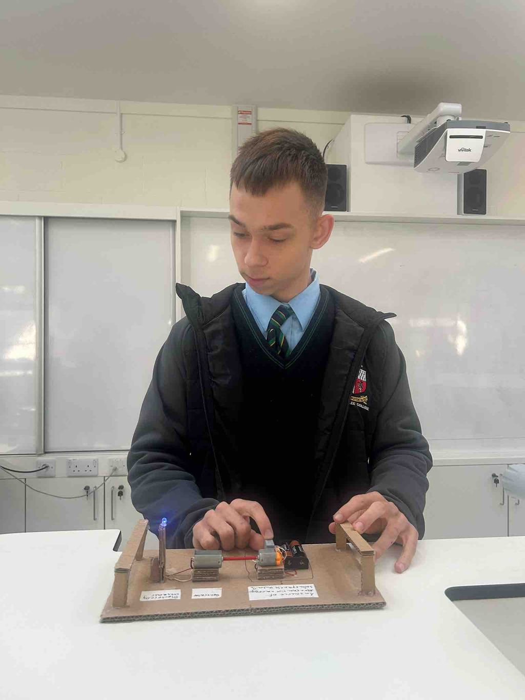 Congratulations to Oleksii, whose project was chosen as the overall winner after he demonstrated how energy can be transferred from electrical to kinetic to light in his working circuit!