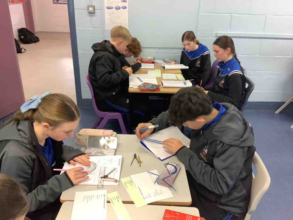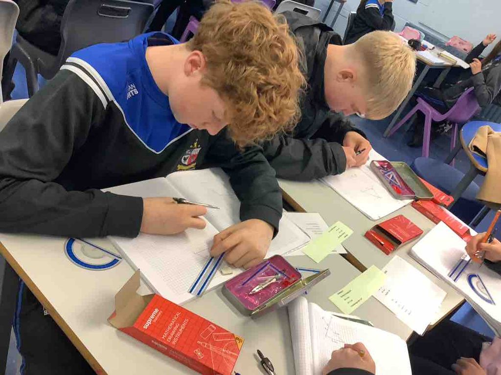 Last week, Ms Caplice’s Second Year Maths class revised triangle constructions through a station-style method of teaching, with the assistance of Ms. Cleare. Students moved around the room completing different construction tasks. Each station had clear step-by-step instructions followed by a challenge question. The class was fully engaged from start to finish (as Ms Caplice assures us is the case with all Maths lessons!) and the time absolutely flew by. It’s great to see students putting in such solid preparation in class as we head towards the Christmas exams.