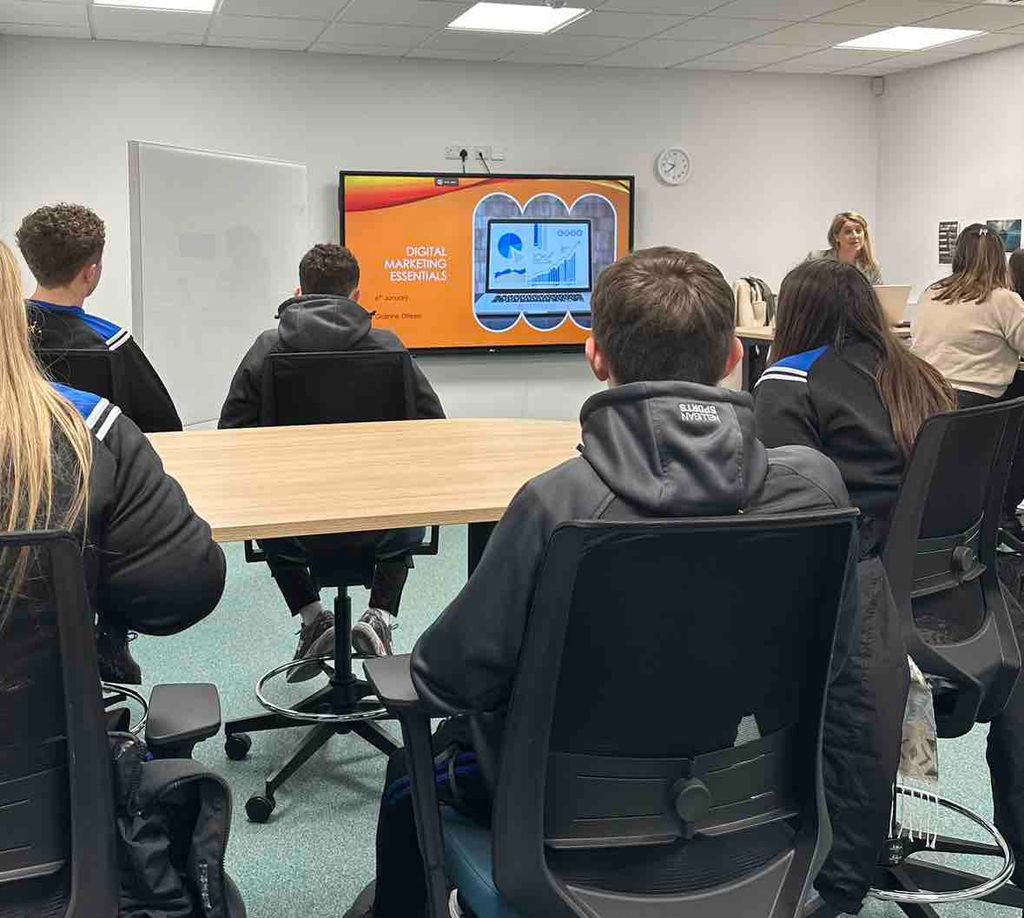 Today, members of our TY Media Team travelled to the Midlands Skills Centre for a brilliant day of content creation and social media workshops. Students worked with Gregg Murphy and Gráinne Dilleen, lecturers at SETU,  who shared their expertise in digital marketing, PR and content creation. Gregg was also instantly recognised by our students for his involvement in the brilliant Gogglebox!