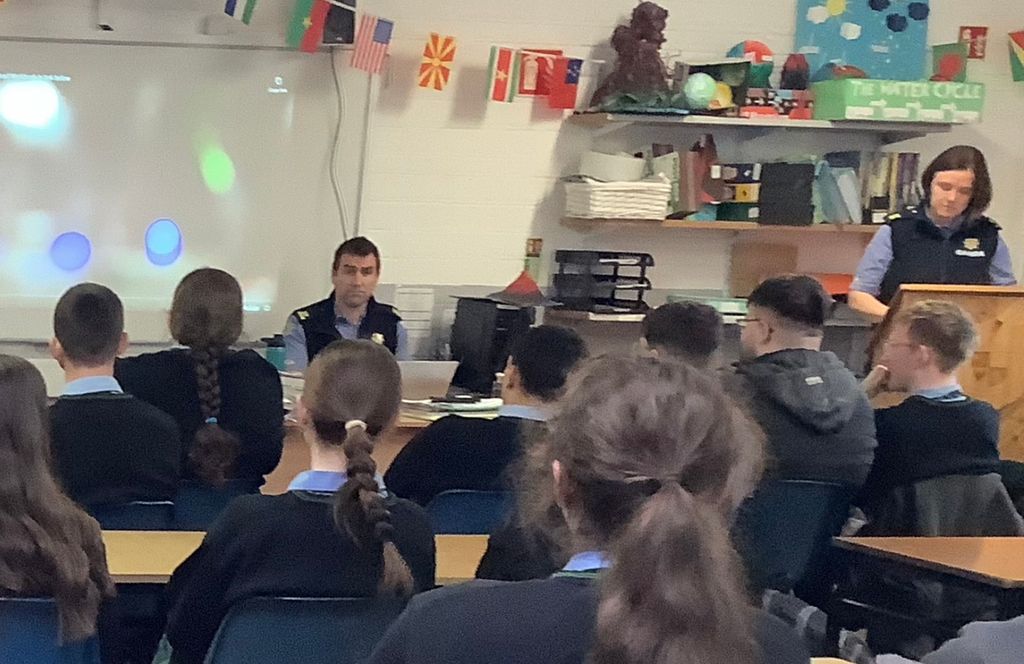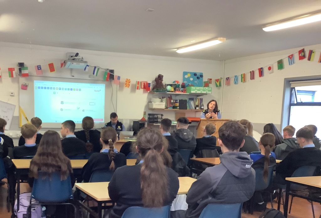 Huge thanks to the Garda Community Unit who called in today to speak with students across both the junior and senior ends of the school. The Gardaí delivered engaging and hard-hitting presentations on the devastating impact of violence and the dangerous side of social media.