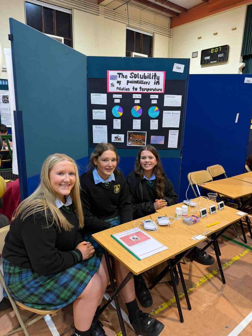 Loren, Sheola, and Mary Kate explored the solubility of painkillers and how this affects their speed of effectiveness. They investigated the impact of temperature and found that 100°C was the optimum. Rebecca and Aine examined people’s habits when returning bottles under the new DRS scheme. Surprisingly, they discovered that many people are creating additional waste by discarding the bags used to return bottles! Jessica and Emma focused on tanning products, looking at their safety and whether consumers truly understand what they are applying to their skin. Ashleen and Niamh investigated whether expensive heat protectant products for hair are worth the price, concluding that more affordable options performed just as well. Finally, Conor, Senan and Ronan explored whether bamboo hurls are superior to ash. Their findings showed that traditional ash hurls still outperform bamboo.